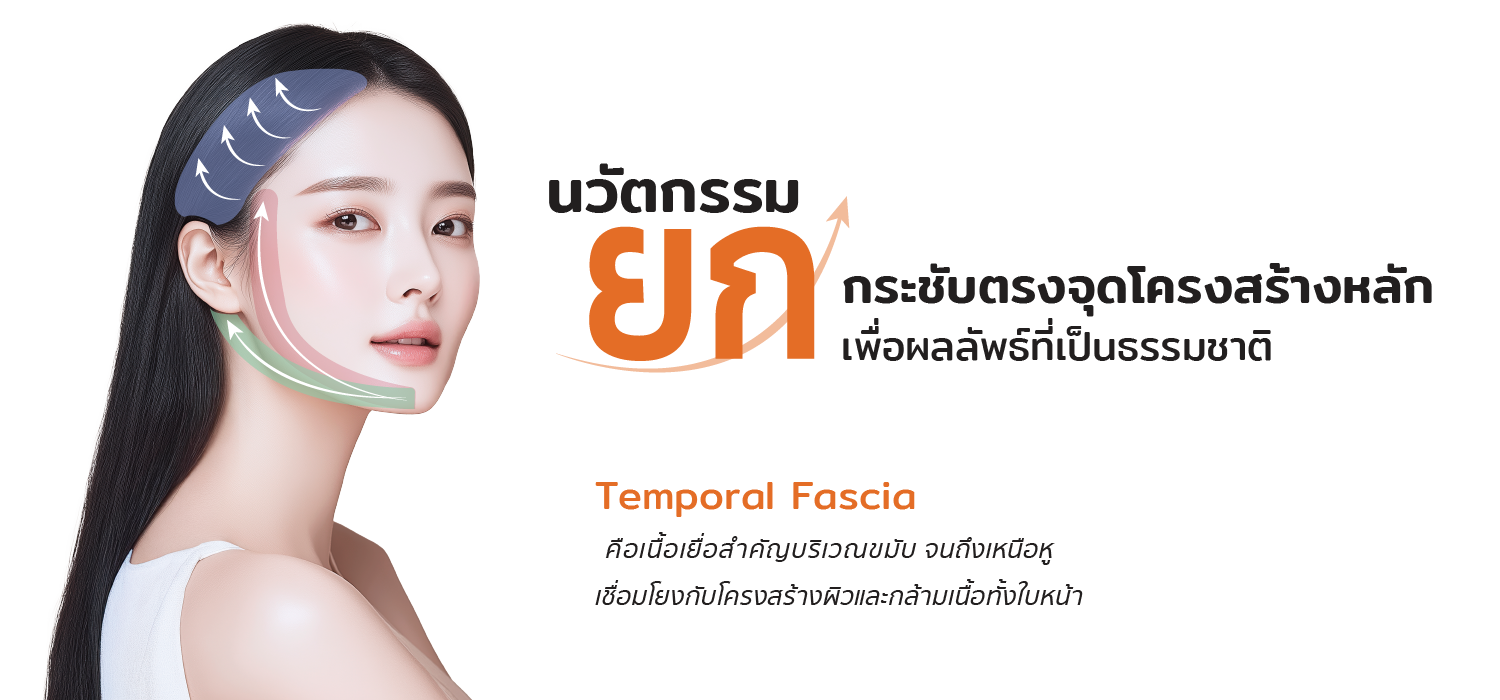 เนื้อเยื่อสำคัญบริเวณขมับจนถึงเหนือหู เชื่อมโยงกับโครงสร้างผิวและกล้ามเนื้อทั้งใบหน้า