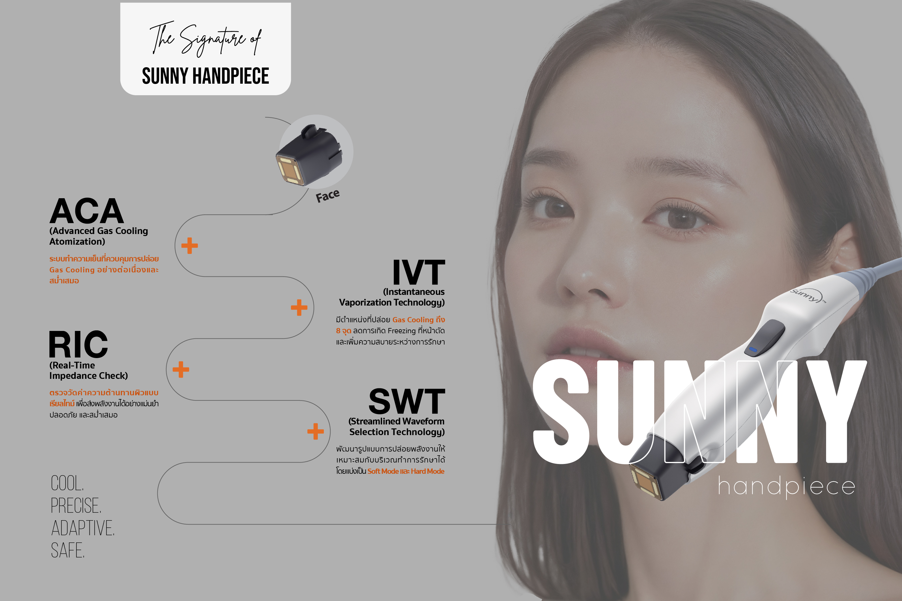 “Sunny” นิยามใหม่แห่งวงการยกกระชับจากประเทศเกาหลีใต้ มาพร้อมกับ 2 Handpieces ได้แก่ “Sunny Handpiece” และ “Pulsar Handpiece”